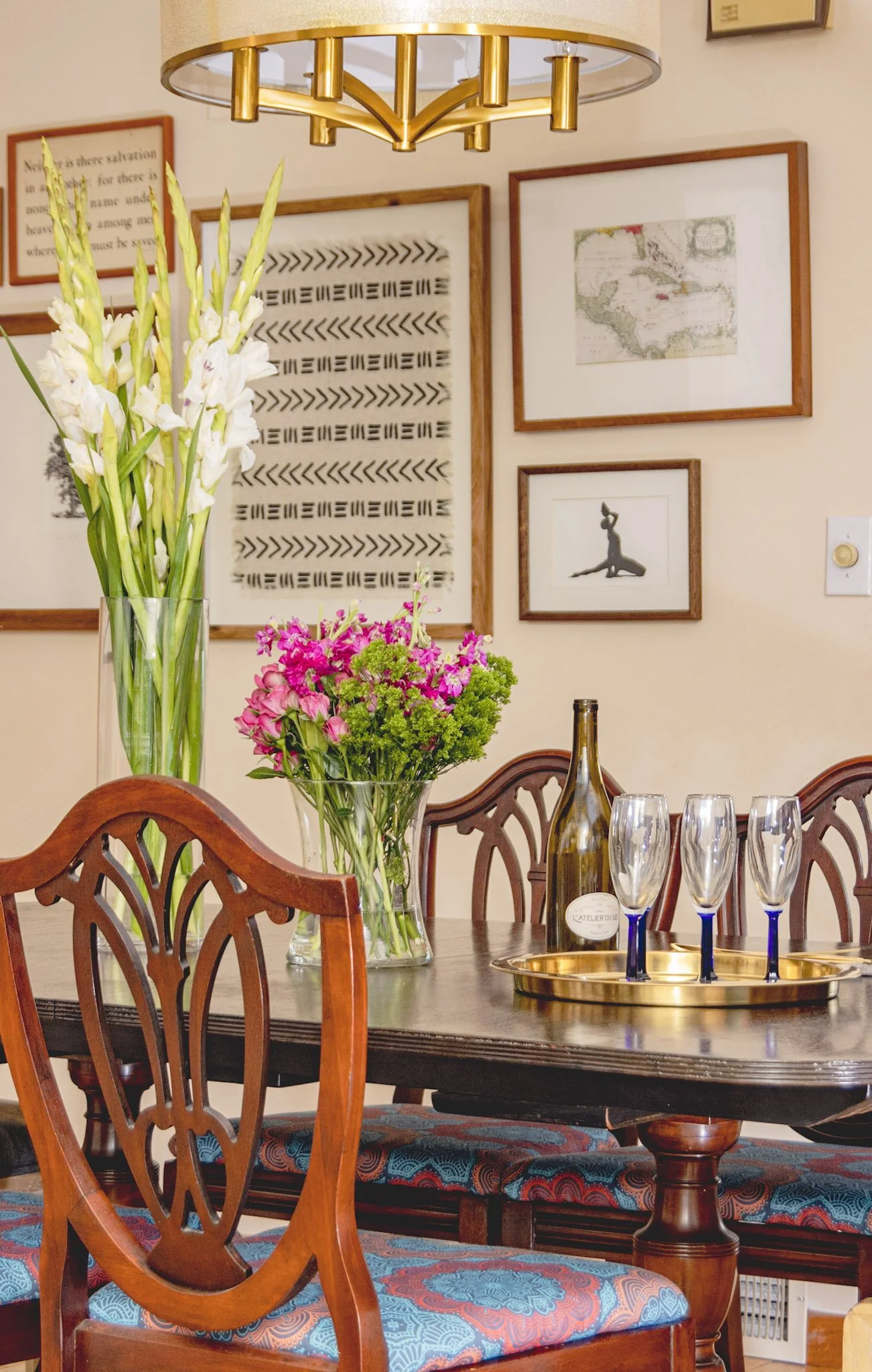 When we walked through her completed design, she was more excited than I’d ever seen her. There was hope, direction, and peace. Her home was no longer chaos - it was her story brought to life. During the design process she donated and sold most of her mom’s larger pieces, but incorporated meaningful keepsakes like her mother’s cookbook. We layered in curvilinear lines, a soft palette of mauves and blush tones, distressed wood, artwork from Black artists, and linen drapes that let in natural light. Her space now reflected her story, while still honoring her mom’s memory.